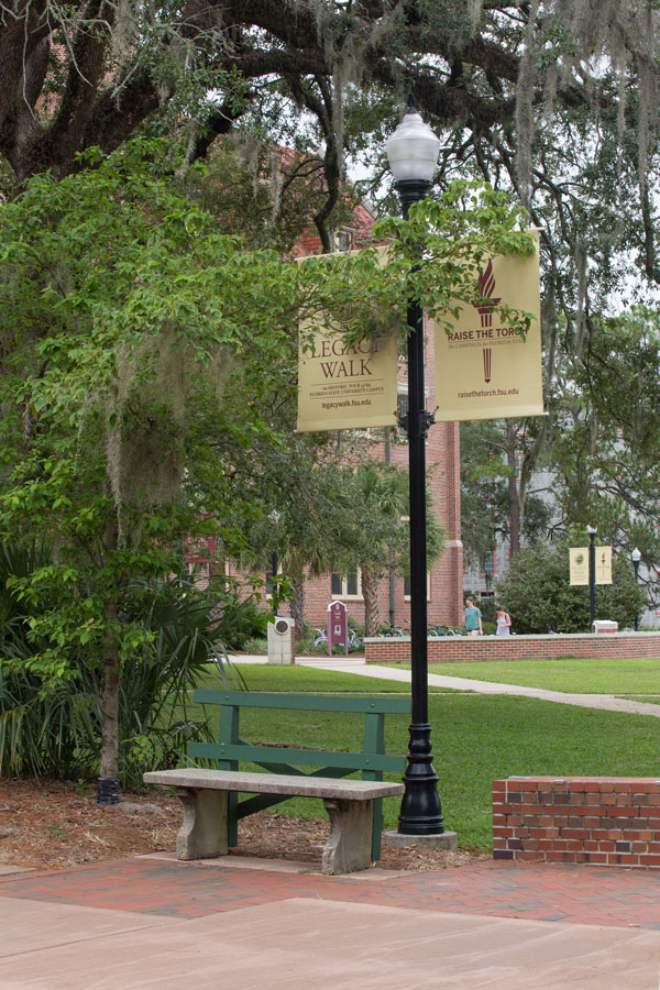 Bonds of a lifetime often bloom during the college years and Florida State offers a sentimental landmark where young couples are known to embrace their love. Affectionately known as the Kissing Bench the granite seat is just cozy enough for two. According to folktale, a long-ago university employee kissed his special girl on this very bench and the two ended up as husband and wife. The fable suggests if you bring a lover to the bench and share a kiss with them, your fates will become forever entwined. So reads the inscription…“If this bench could talk/oh the stories it would tell/of kisses young and old/if you sit, beware the spell.”